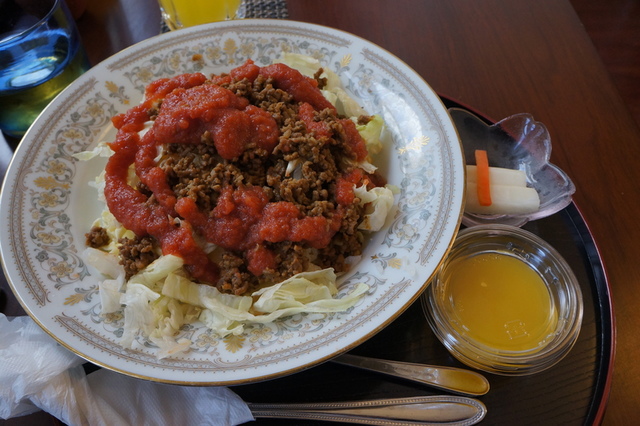 飯是豬加牛肉碎,還有新鮮的蕃茄茸。甜品是布甸