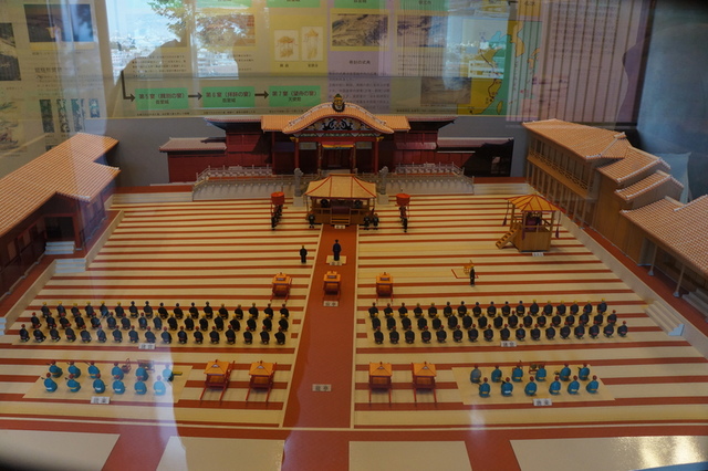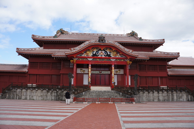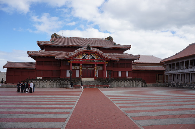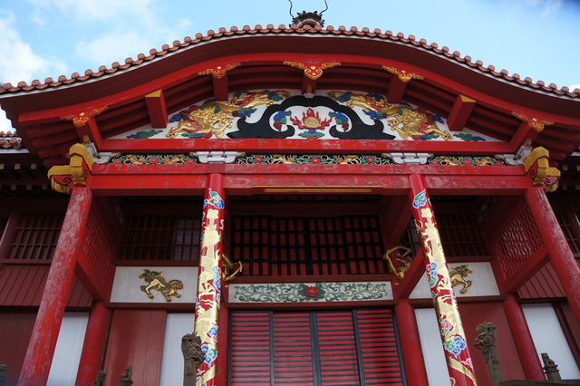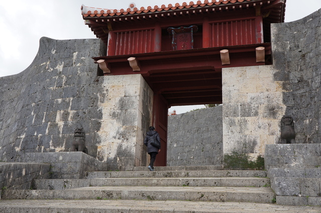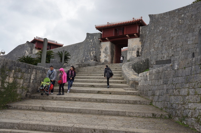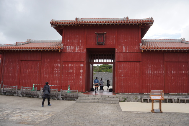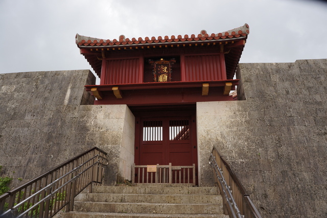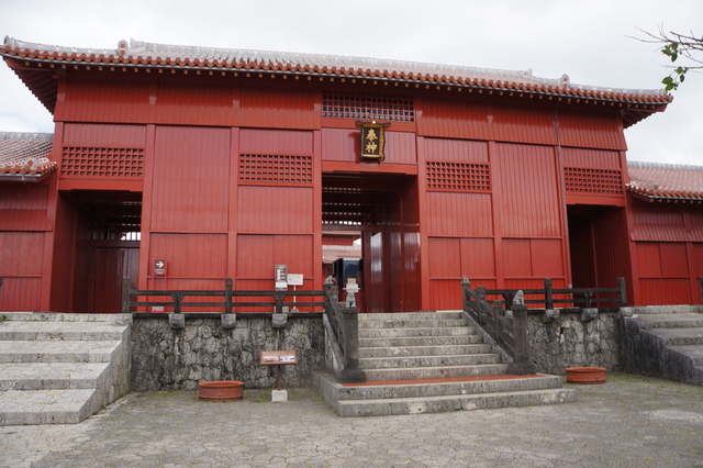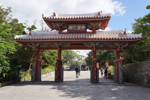 去首理城,首先經過第一道正門——中山門(又稱「國門」,1908年毀壞),之後為中國風格的牌樓式建築守禮門,建造年代比中山門晚約100年,建於第二尚氏王朝國王尚清在位時期。門上的牌匾題額為「守禮之邦」,為中國皇帝冊封琉球國王時所賜。守禮門於1933年被日本政府指定為國寶,在二戰期間被炸毀,1958年修復。1992年開始主體建築復原工作。2000年首里城被聯合國教科文組織列為世界文化遺產。