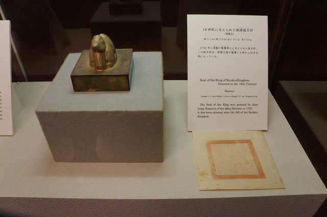 1609年日本薩摩藩入侵,首里城內文物珍寶曾遭劫掠。1879年日本吞併琉球後,曾一度將首里城改為熊本鎮台沖繩分遣隊的兵營。首里市議會甚至在1923年通過了拆除首里城正殿的決議。後來伊東忠太郎、鐮倉芳太郎在文部省交涉,方才被保留下來。後於1925年將首里城定為國寶級文物,內設沖繩神社。