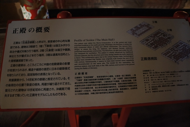 據史書記載,首里城曾數度被焚毀和重建。第一次是1453年,第一尚氏王朝國王尚金福死後,王子尚志魯與王弟尚布里為爭奪王位發生內訌,首里城內建築完全燒毀。第二次火災發生於1660年,重建用了11年的時間。第三次火災發生於1709年,正殿、南殿、北殿被燒毀。由於財力窘迫,直至1712年薩摩藩贈送19,525根原木後方修復。